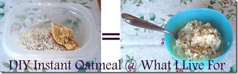 You can store your instant oatmeal in baggies or in little tupperwares like I do. It only takes 5 minutes to make several and will save you a bunch of time in the mornings.
